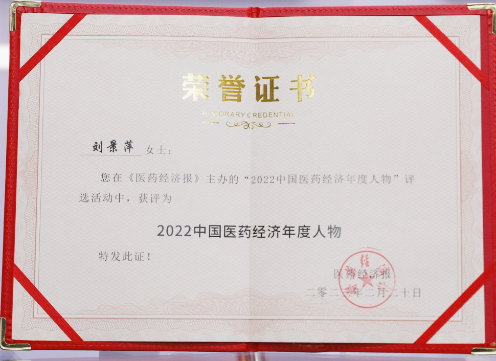 公海赌船710药业集团董事长刘景萍当选“2022中国医药经济年度人物”