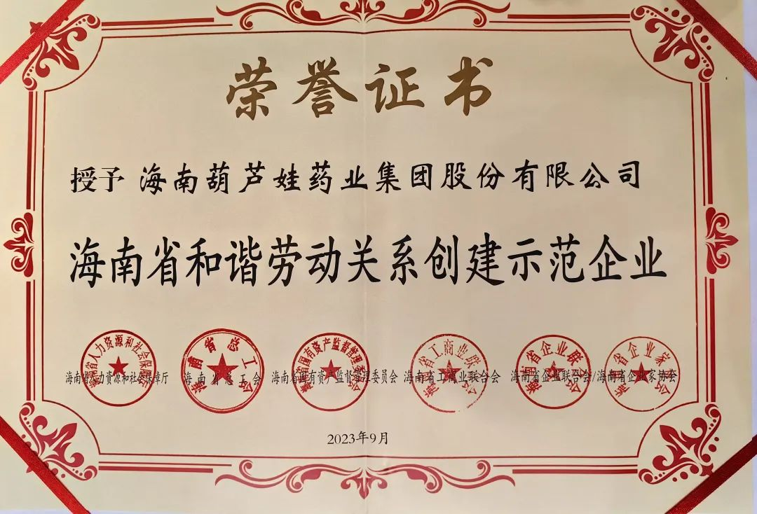 公海赌船710药业集团获评“海南省和谐劳动关系创建示范企业”