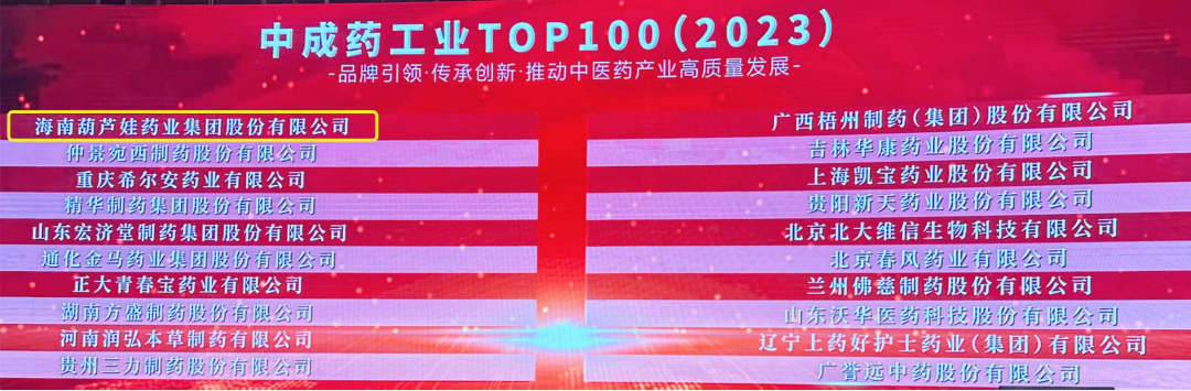 会上,还发布了“2023中成药工业TOP100”榜单,公海赌船710药业集团荣耀上榜。