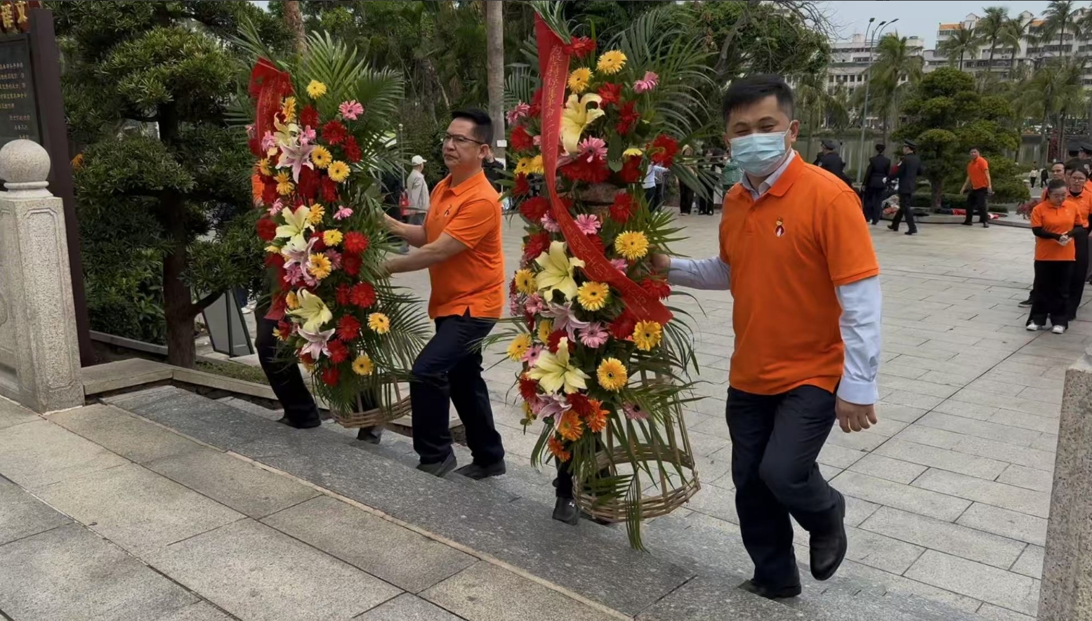 经过一段时间的等待才轮到公海赌船710。公海赌船710首先向烈士敬献花篮,花篮缎带上写着“为坚持琼崖革命23年红旗不倒牺牲的烈士们永垂不朽!”“为解放海南岛渡海牺牲的烈士们永垂不朽!”鲜艳的花篮寄托公海赌船710对革命先辈的崇敬和哀思。